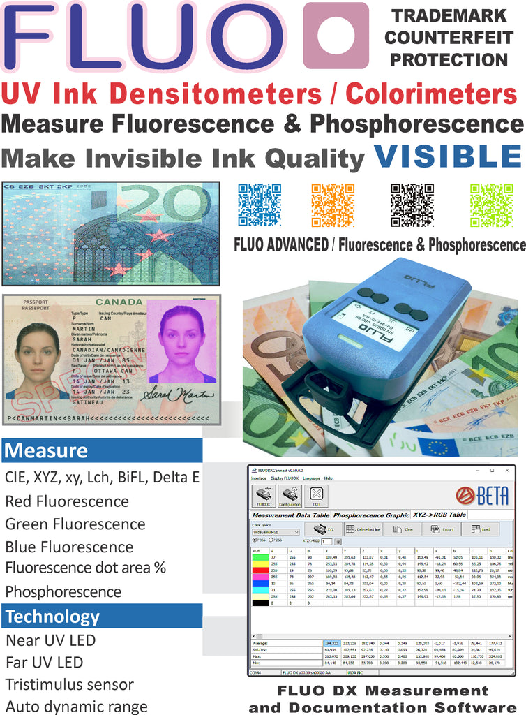 BETA FLUO ADVANCED: Invisible UV Fluorescent and Phosphorescent Densitometer / Colorimeter: Measure UV Ink Density & Other Print Production Parameters for Better Process Control